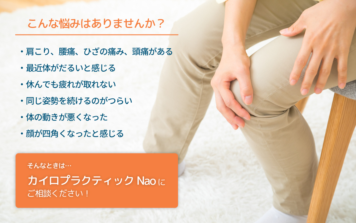 初めまして。小松市の「カイロプラクティック Nao」です。当院のHPへお越しいただきありがとうございます。